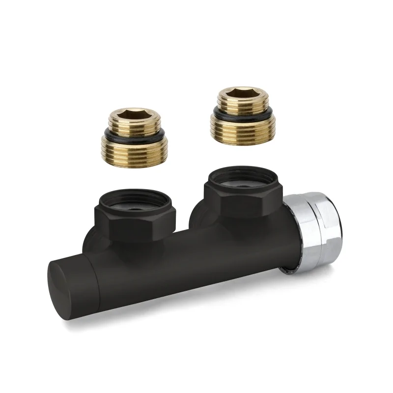 Valvola termostatizzabile d'arredo nera ad angolo....